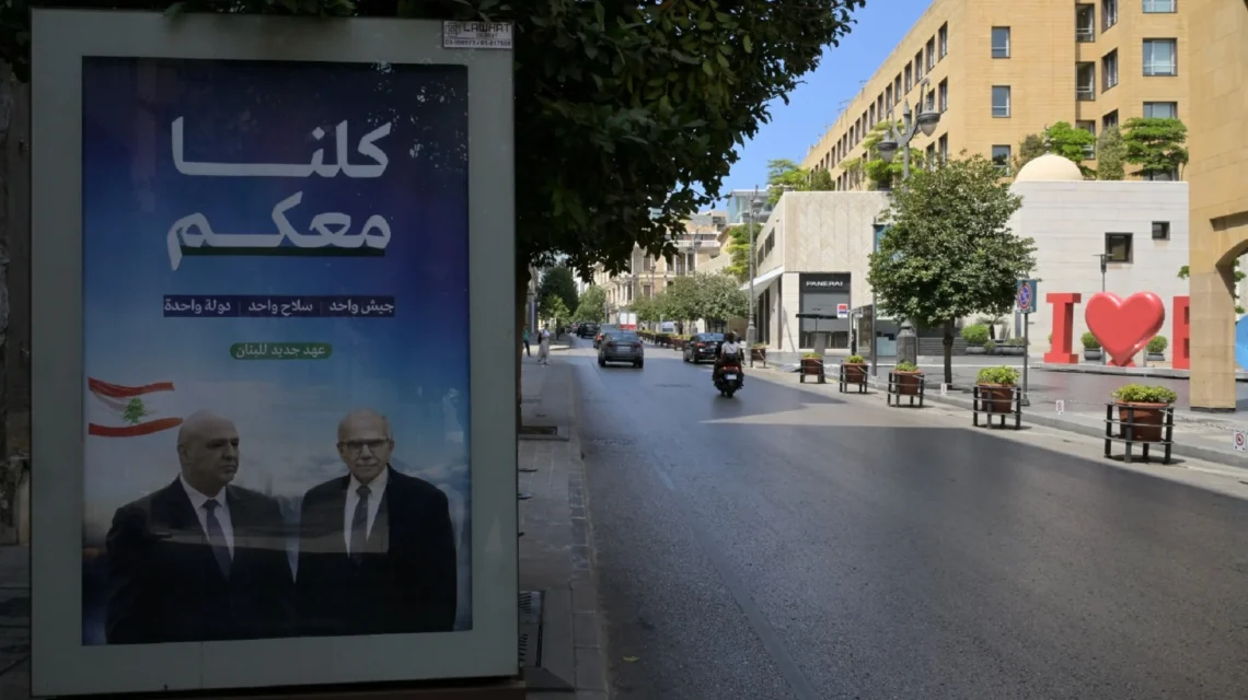 حملت اللوحات صور رئيسي الجمهورية العماد جوزف عون والحكومة نواف سلام، مع شعار “كلنا معكم، جيش واحد، سلاح واحد، دولة واحدة، عهد جديد للبنان”.